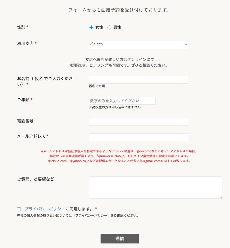 面接会場で登録時に顔写真付きの証明書や住所の記入などが必要ですが、ユニバース倶楽部は東京都の条例に基づいた運営をしていますので安心してください。スタッフも個人情報には敏感で個人情報保護士の資格を持っている方がいます。