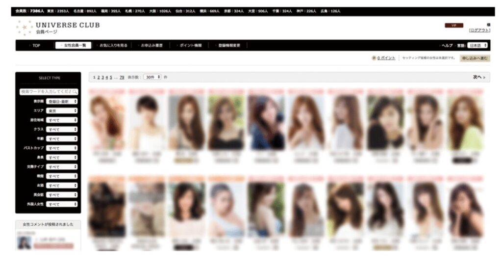 ほとんどの交際クラブで、会員数は非公開ですがユニバース倶楽部さんは公開してくれているのでリアルタイムで知ることができます。